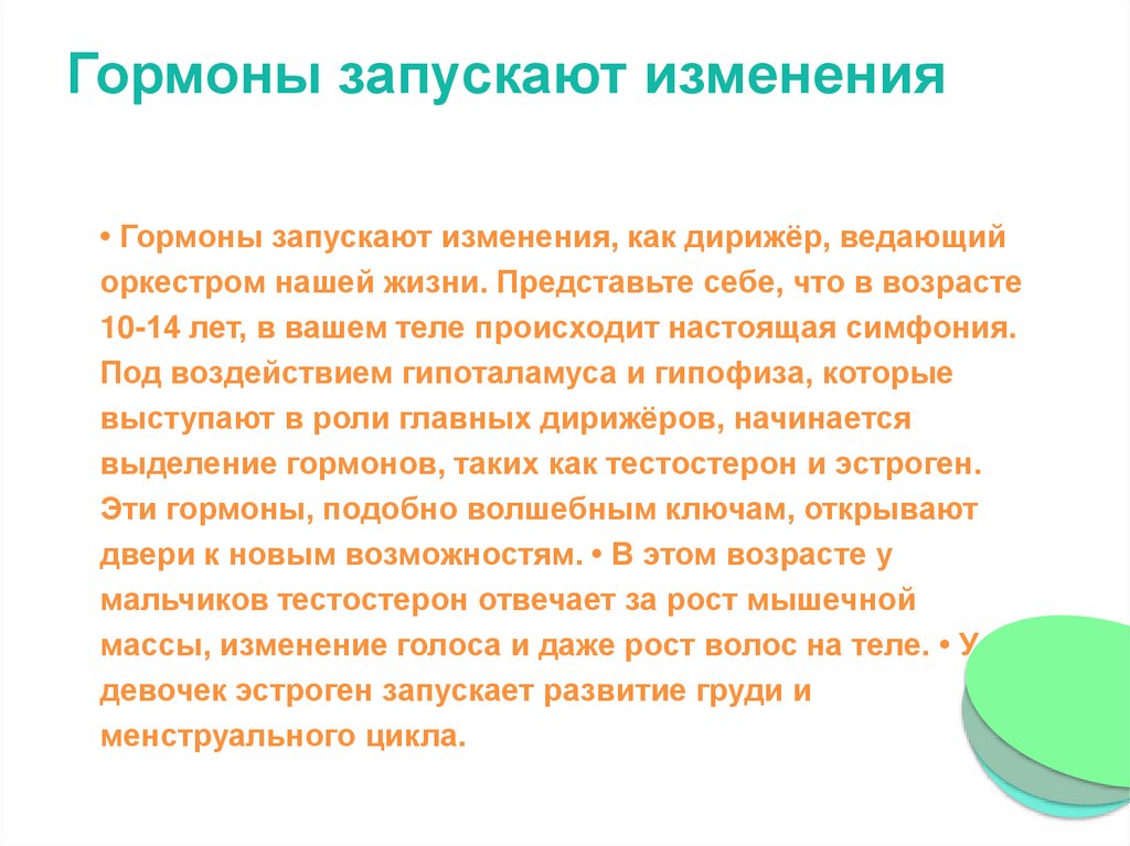 Гормоны запускают изменения• Гормоны запускают изменения, как дирижёр, ведающий