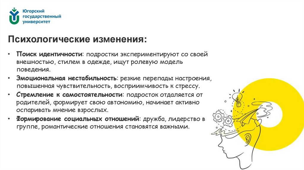 Психологические изменения:• Поиск идентичности: подростки экспериментируют со своей