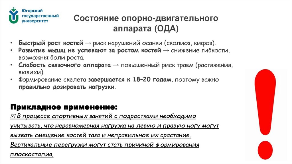 изменения в опорно-двигательном аппарате и необходимость учёта