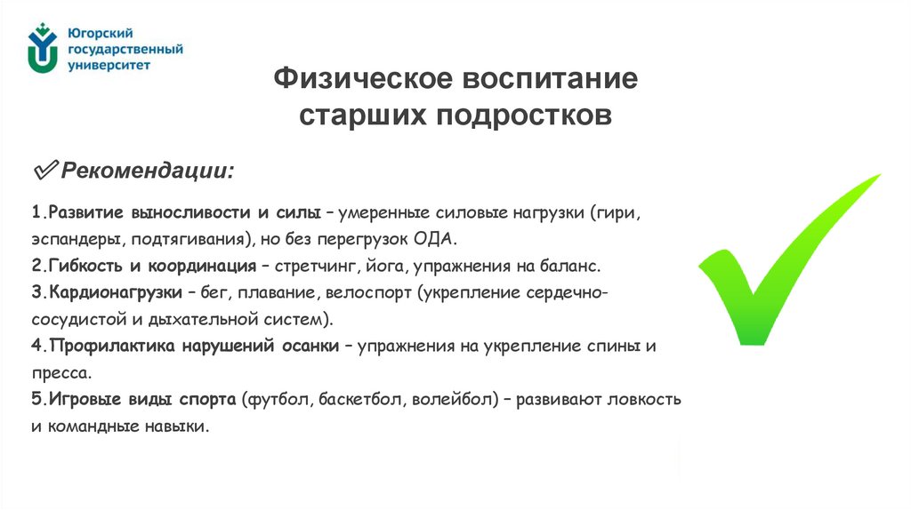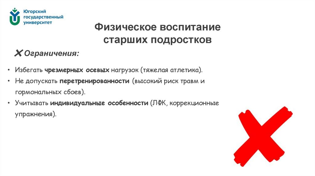 • Учитывать индивидуальные особенности (ЛФК, коррекционные