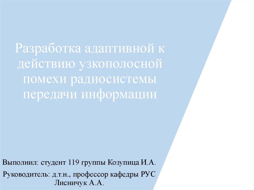 Выполнил: студент 119 группы Козупица И.А.Руководитель: д.т.н., профессор кафедры РУС