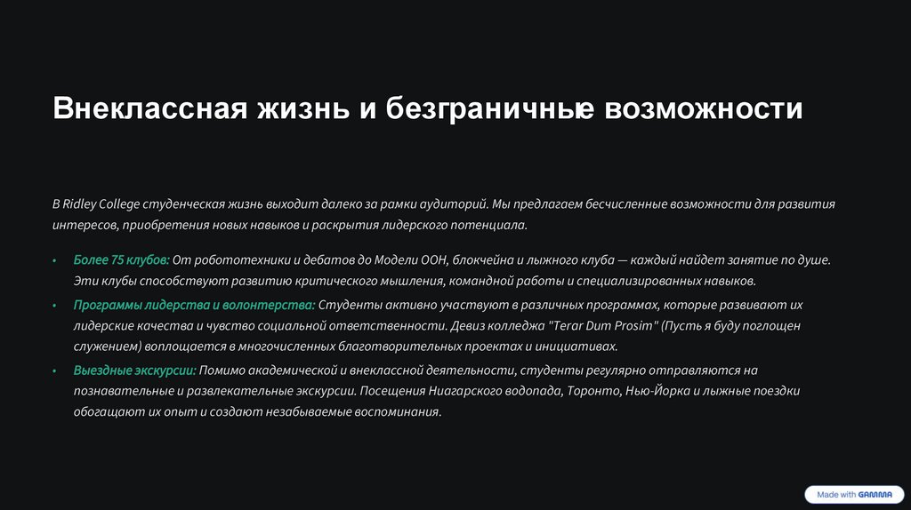 Внеклассная жизнь и безграничные возможностиВ Ridley College студенческая жизнь выходит далеко за рамки аудиторий. Мы предлагаем бесчисленные возможности для развития