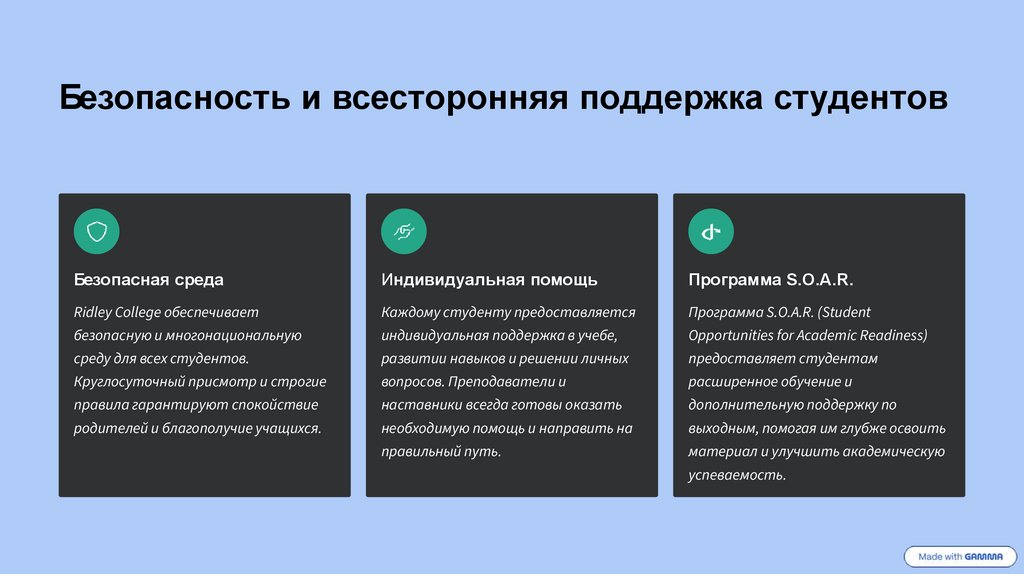 Безопасность и всесторонняя поддержка студентовБезопасная среда