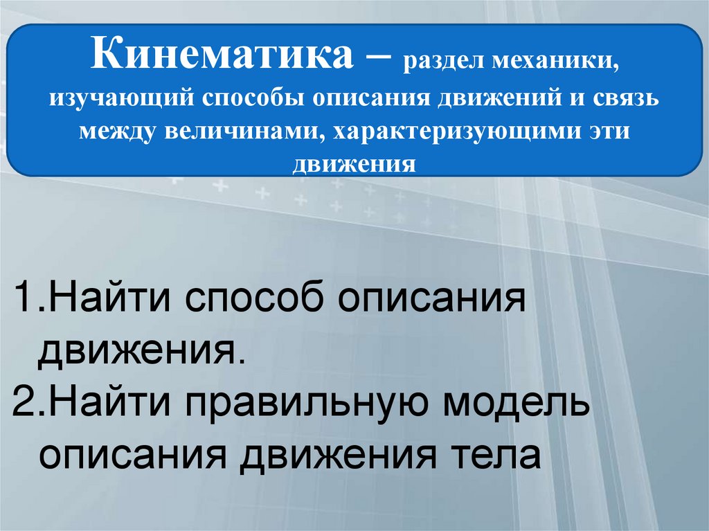 Кинематика - часть механики, изучающаядвижения тел без исследования причин,