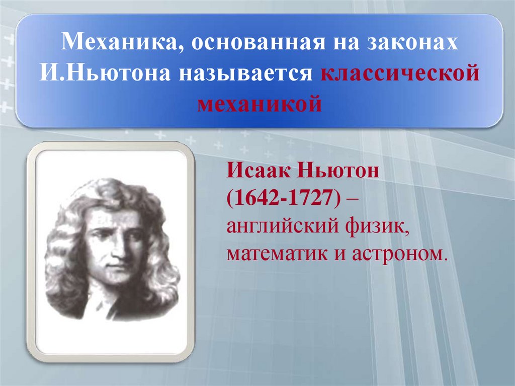 Классическая механика Ньютона - механика,основанная на законах Ньютона.