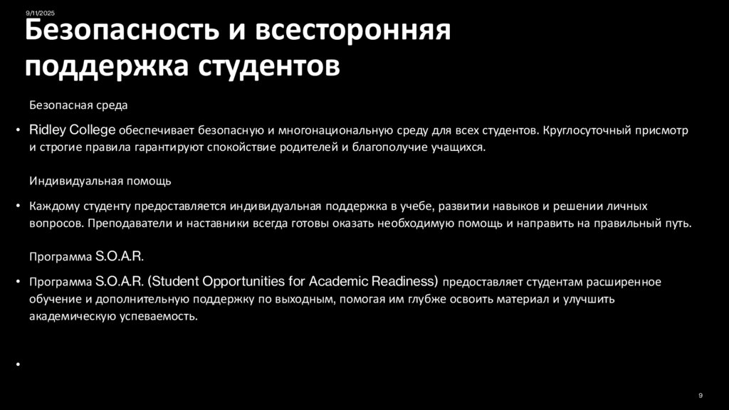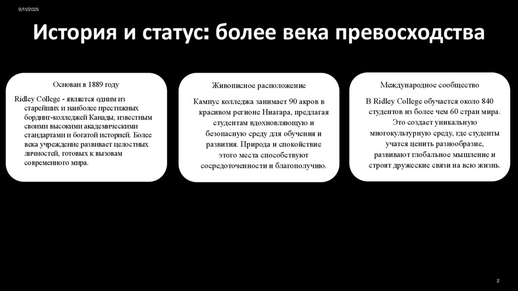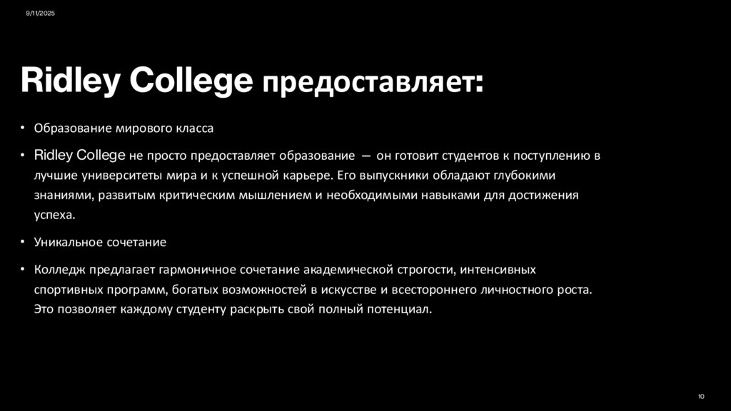 • Ridley College не просто предоставляет образование — он готовит студентов к поступлению в