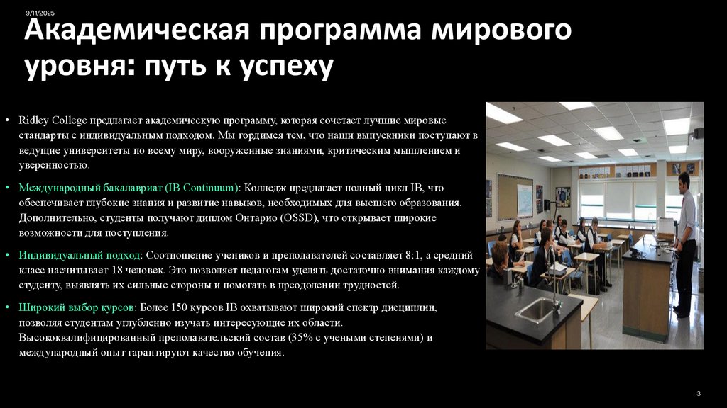 • Ridley College предлагает академическую программу, которая сочетает лучшие мировые