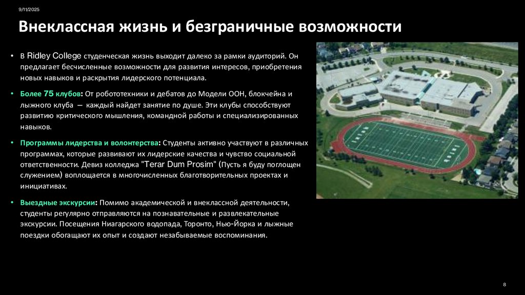 • В Ridley College студенческая жизнь выходит далеко за рамки аудиторий. Он