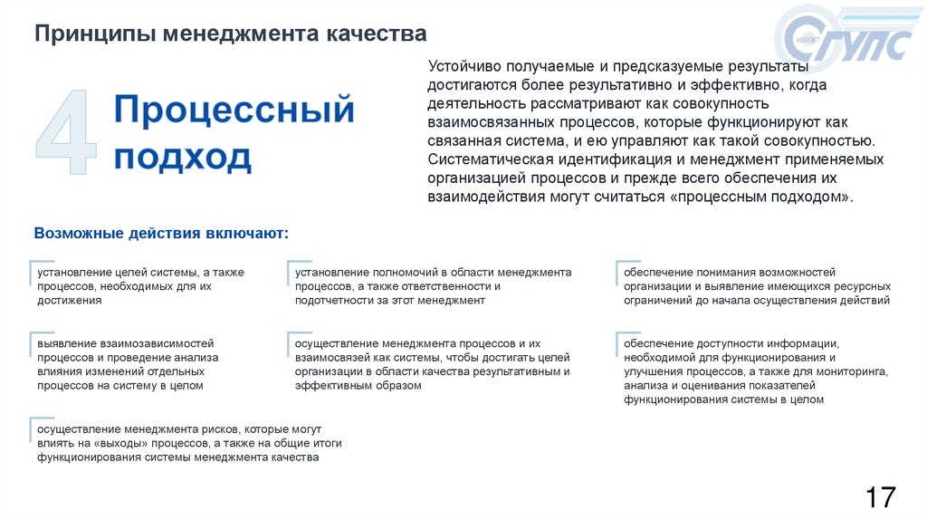 В процессы, необходимые для системы менеджмента качества, следует включать процессы управленческой