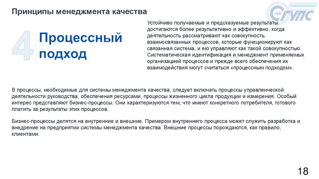 внедрение на предприятии системы менеджмента качества. Внешние процессы порождаются, как правило,