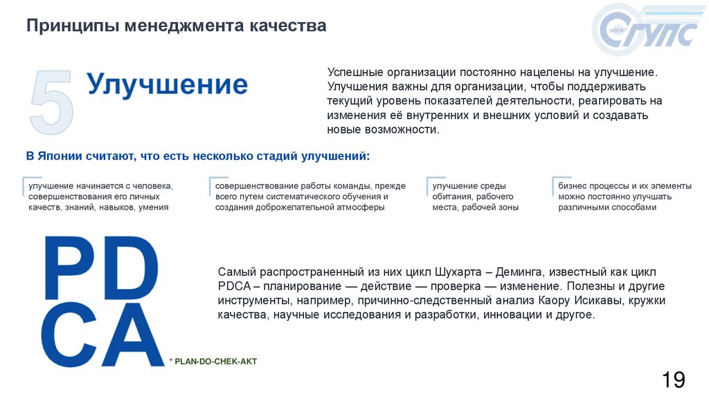 Принципы менеджмента качестваУспешные организации постоянно нацелены на улучшение.