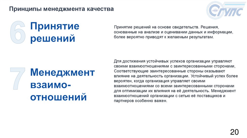 Принципы менеджмента качестваПринятие решений на основе свидетельств. Решения,