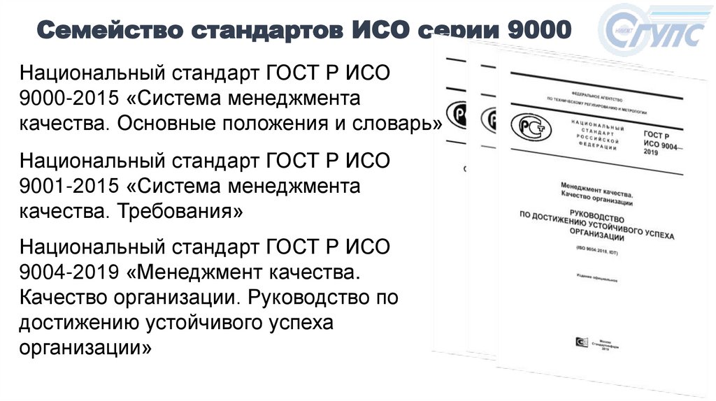 Семейство стандартов ИСО серии 9000Национальный стандарт ГОСТ Р ИСО