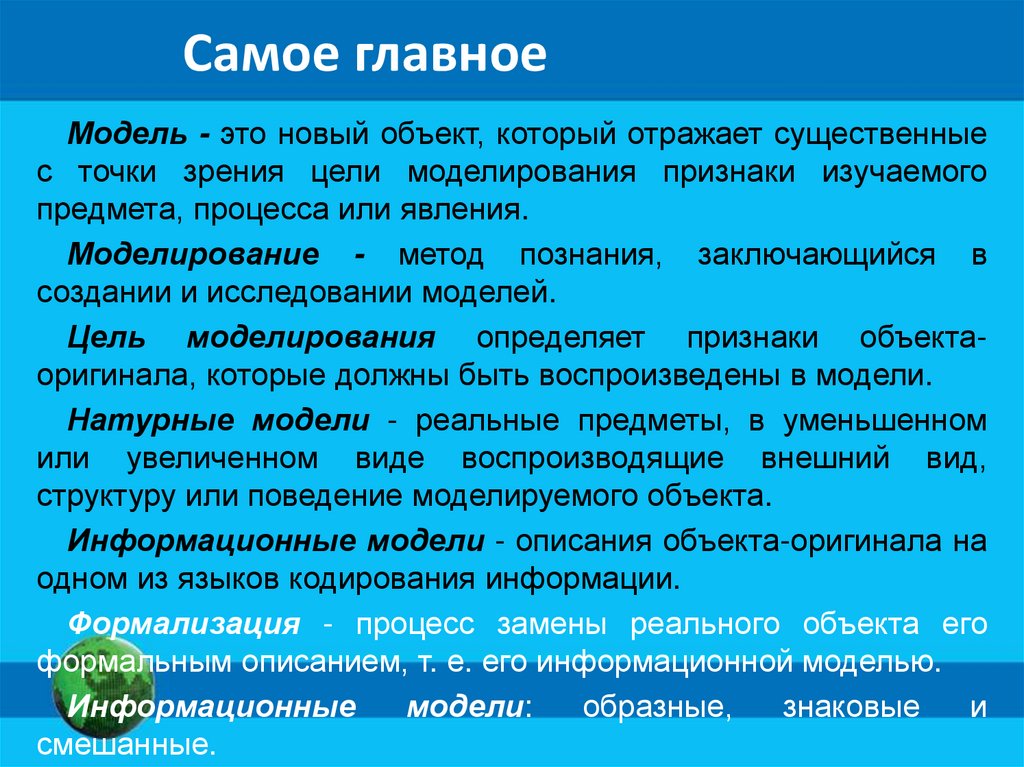 Опорный конспектМодель - это новый объект, который отражает существенные с