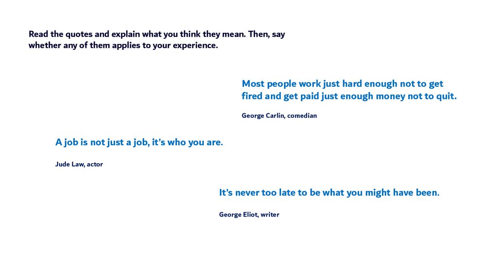 Read the quotes and explain what you think they mean. Then, saywhether any of them applies to your experience.