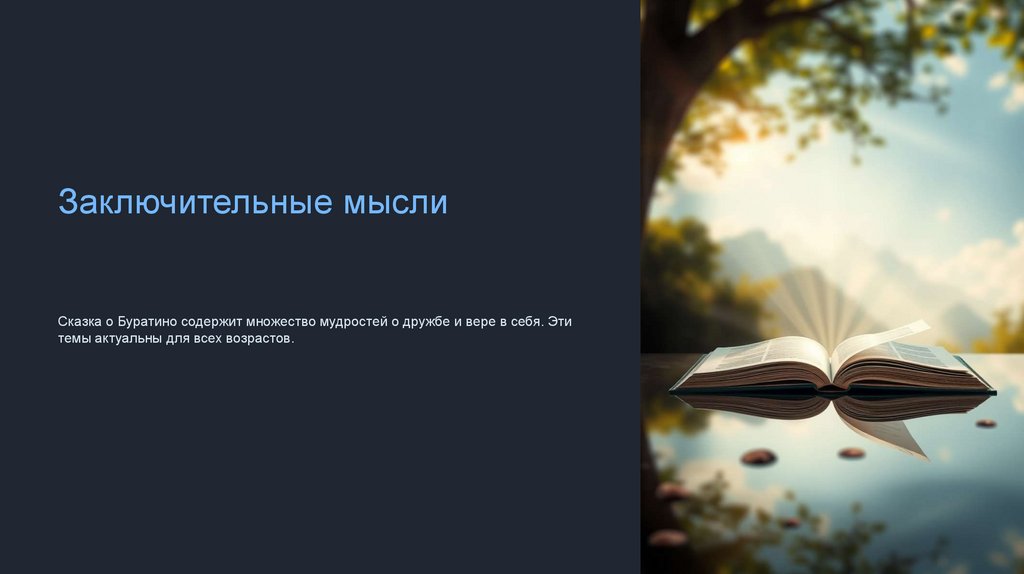 Заключительные мыслиСказка о Буратино содержит множество мудростей о дружбе и вере в себя. Эти