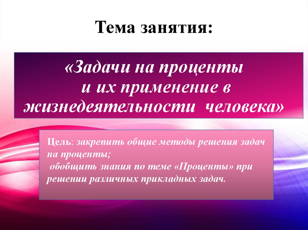 1. Тема занятия: «Задачи на проценты и их применение в жизнедеятельности человека»