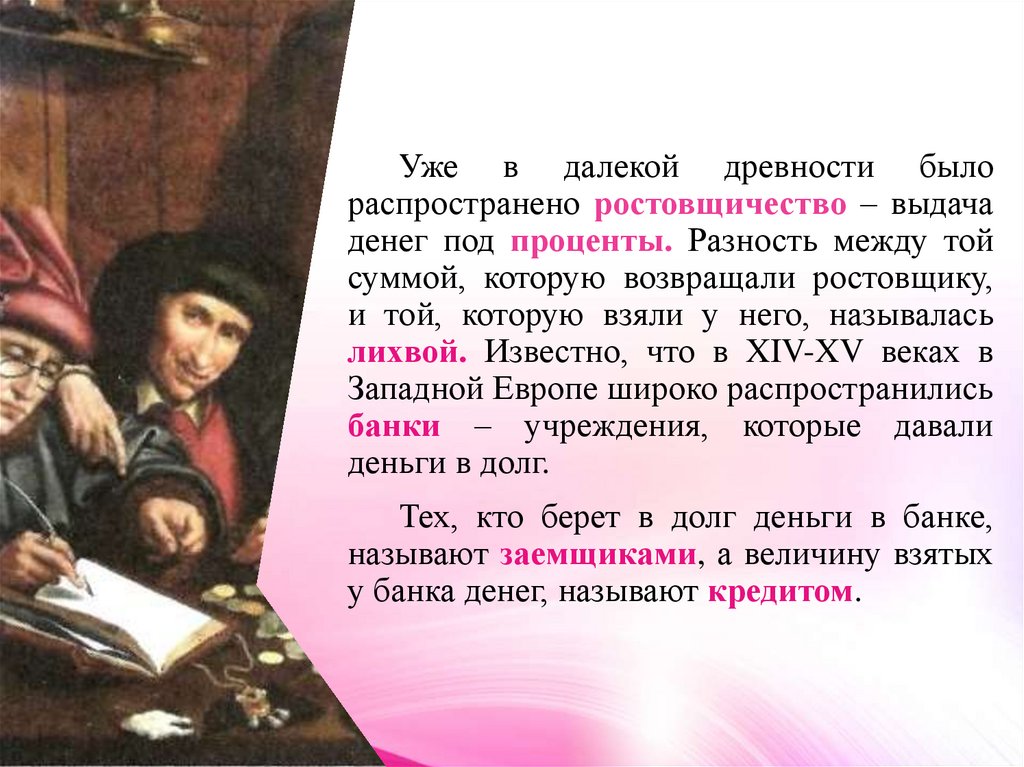 Уже в далекой древности былораспространено ростовщичество – выдача