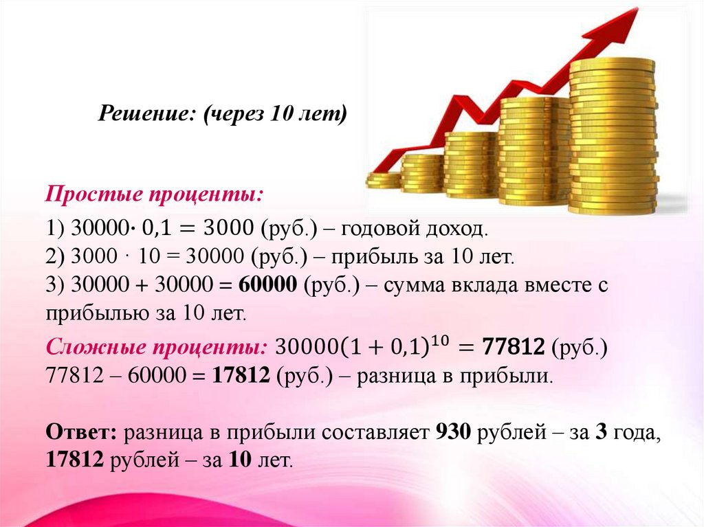 Долгое время под процентами понимались исключительноприбыль или убыток на каждые сто рублей. Они применялись