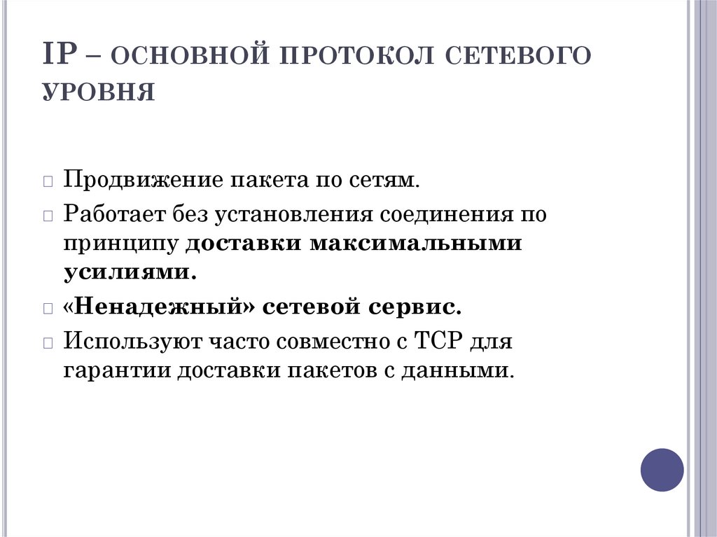 IP – ОСНОВНОЙ ПРОТОКОЛ СЕТЕВОГОУРОВНЯ