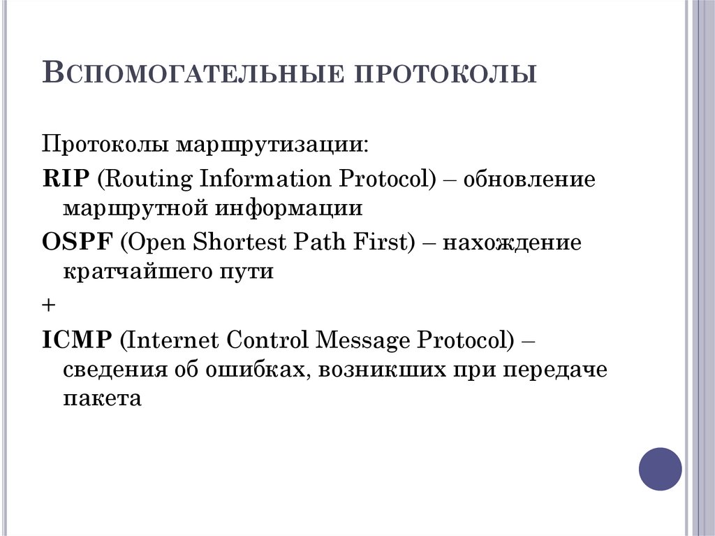 ВСПОМОГАТЕЛЬНЫЕ ПРОТОКОЛЫПротоколы маршрутизации: