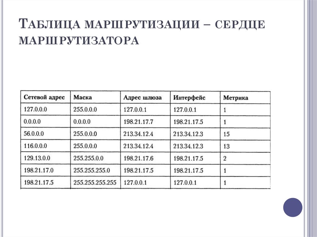 ТАБЛИЦА МАРШРУТИЗАЦИИ – СЕРДЦЕМАРШРУТИЗАТОРА