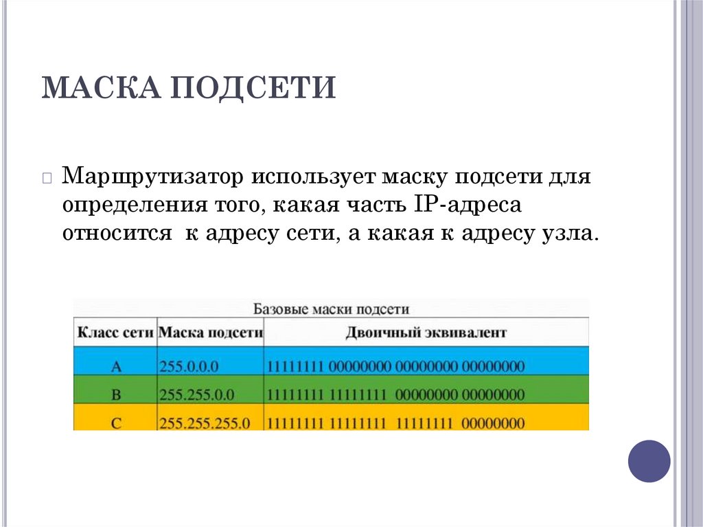 МАСКА ПОДСЕТИМаршрутизатор использует маску подсети для