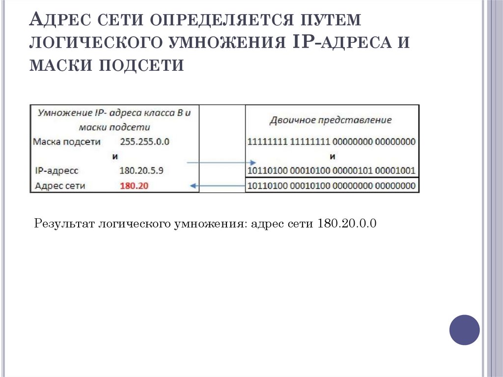 АДРЕС СЕТИ ОПРЕДЕЛЯЕТСЯ ПУТЕМЛОГИЧЕСКОГО УМНОЖЕНИЯ IP-АДРЕСА И