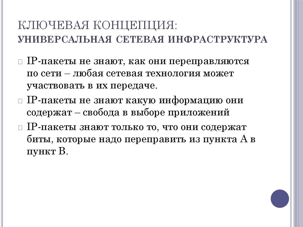 КЛЮЧЕВАЯ КОНЦЕПЦИЯ:УНИВЕРСАЛЬНАЯ СЕТЕВАЯ ИНФРАСТРУКТУРА