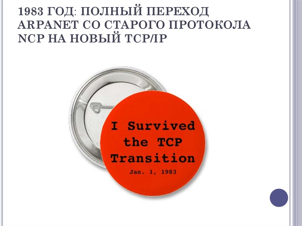 1983 ГОД: ПОЛНЫЙ ПЕРЕХОДARPANET СО СТАРОГО ПРОТОКОЛА