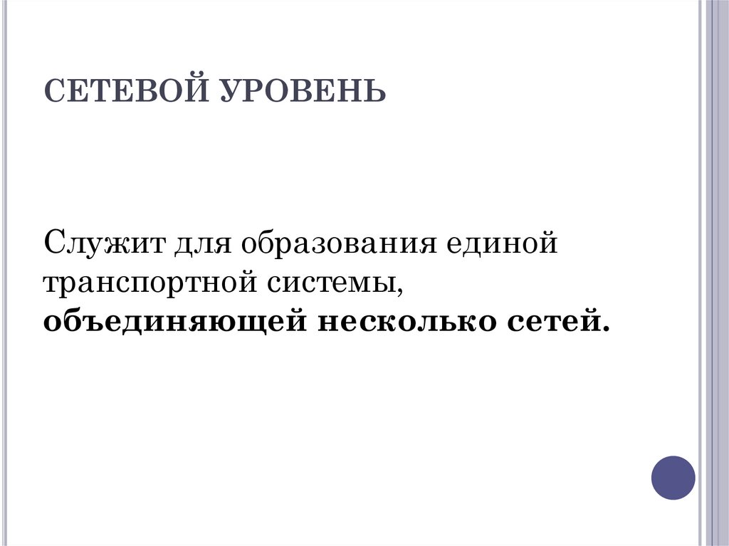 СЕТЕВОЙ УРОВЕНЬСлужит для образования единой