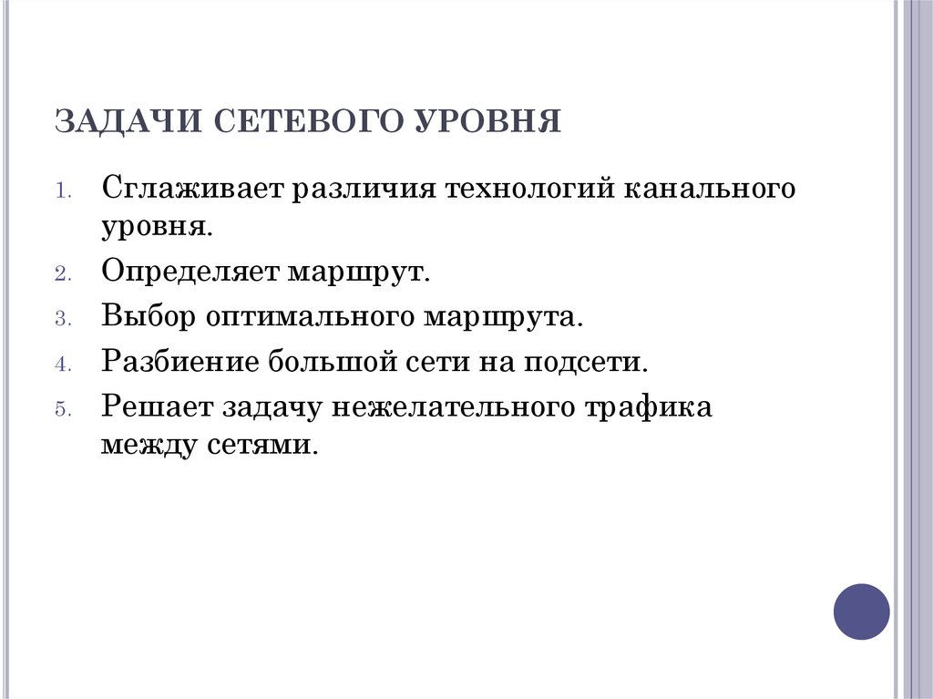 ЗАДАЧИ СЕТЕВОГО УРОВНЯ1.