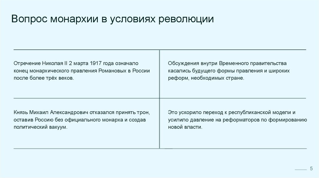 Вопрос монархии в условиях революцииОтречение Николая II 2 марта 1917 года означало
