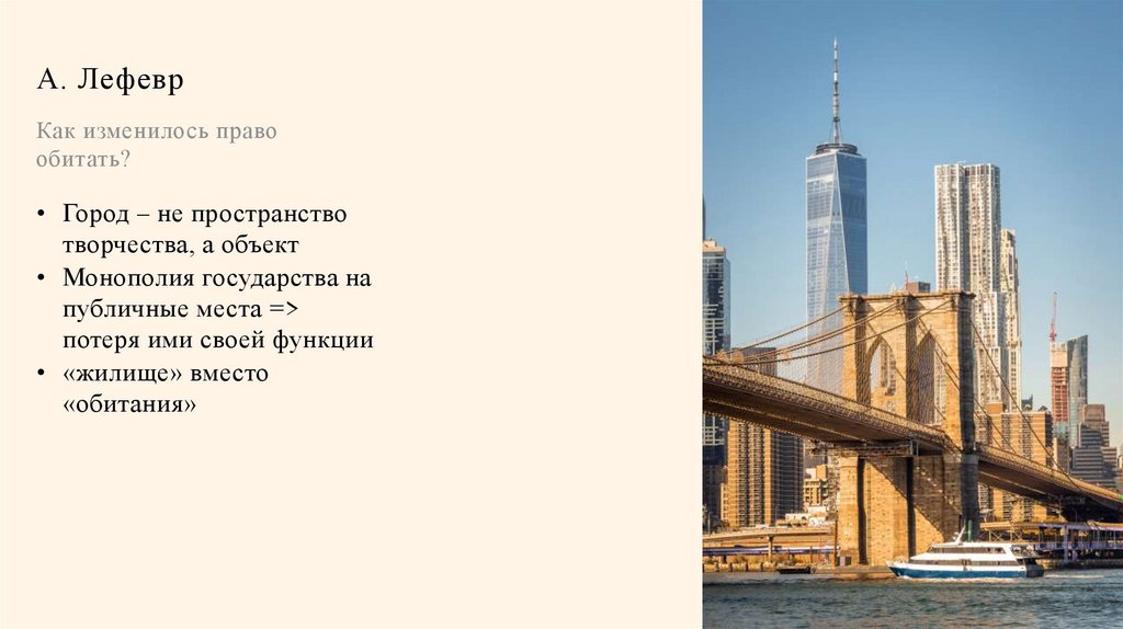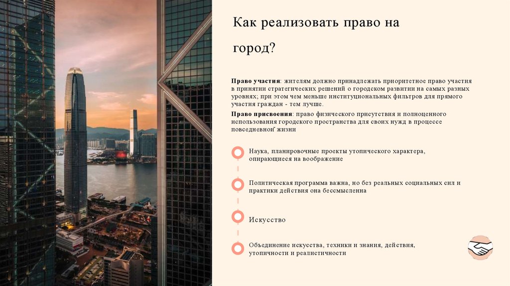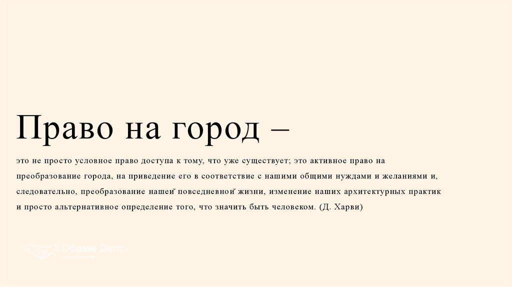 Право на город –это не просто условное право доступа к тому, что уже существует; это активное право на