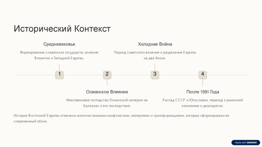 История Восточной Е вропы отмечена многочисленными конфликтами, империями и трансформациями, которые сформировали ее