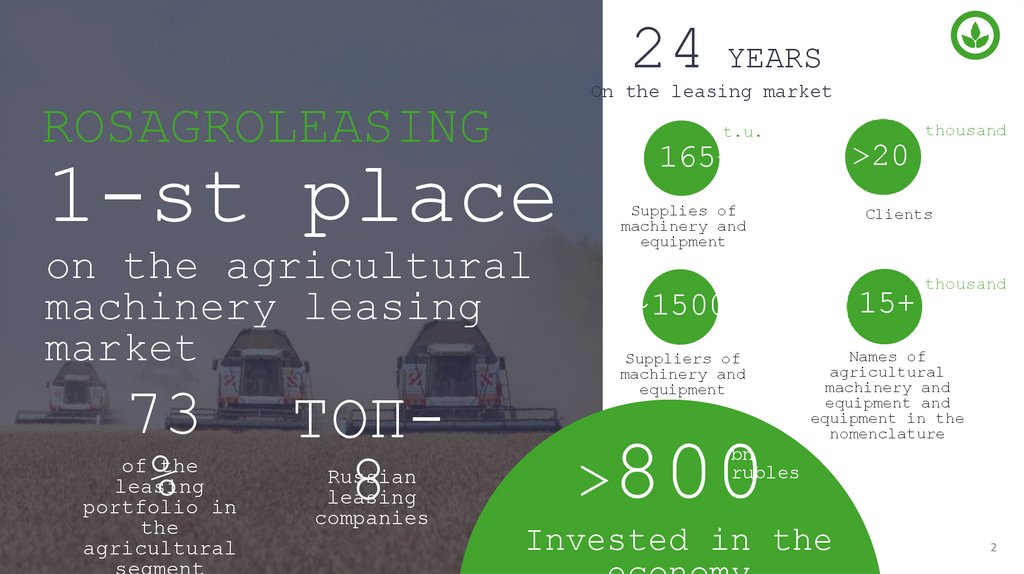 ROSAGROLEASING ACHIEVEMENTSsince 2001