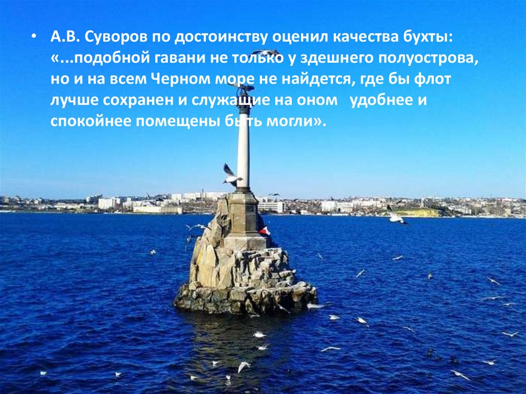 • А.В. Суворов по достоинству оценил качества бухты:«...подобной гавани не только у здешнего полуострова,