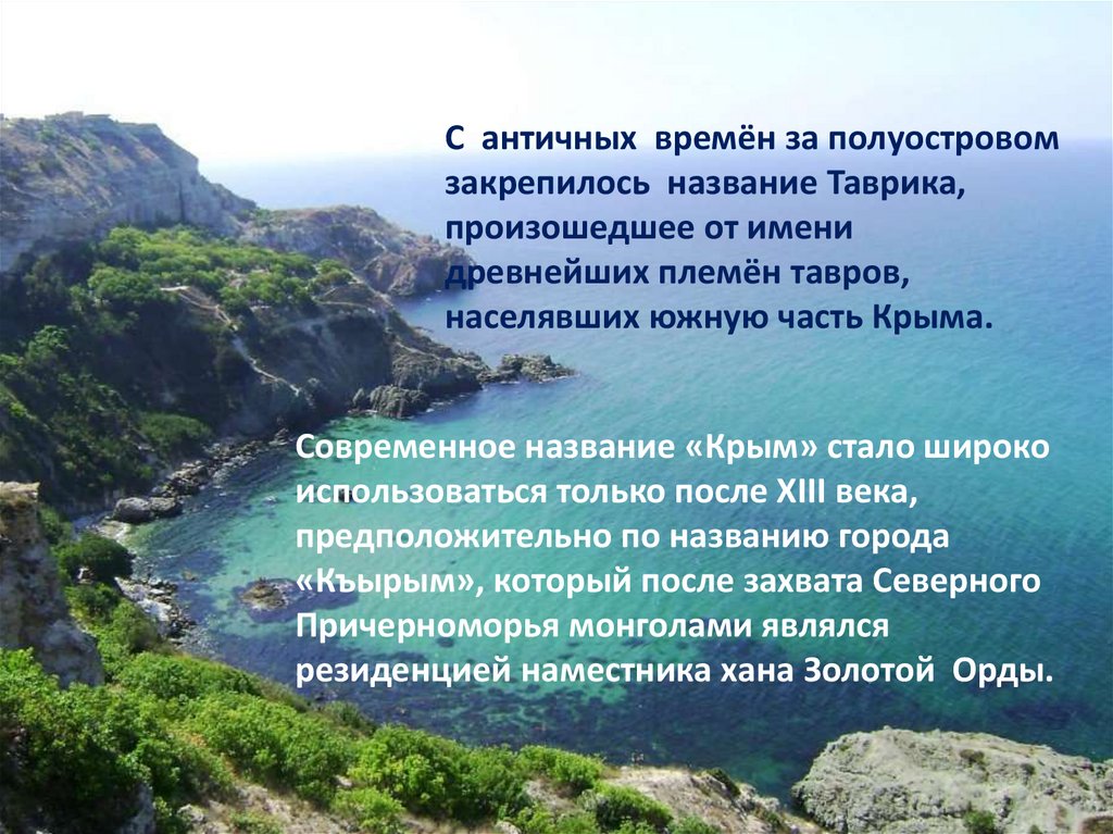С античных времён за полуостровомзакрепилось название Таврика,