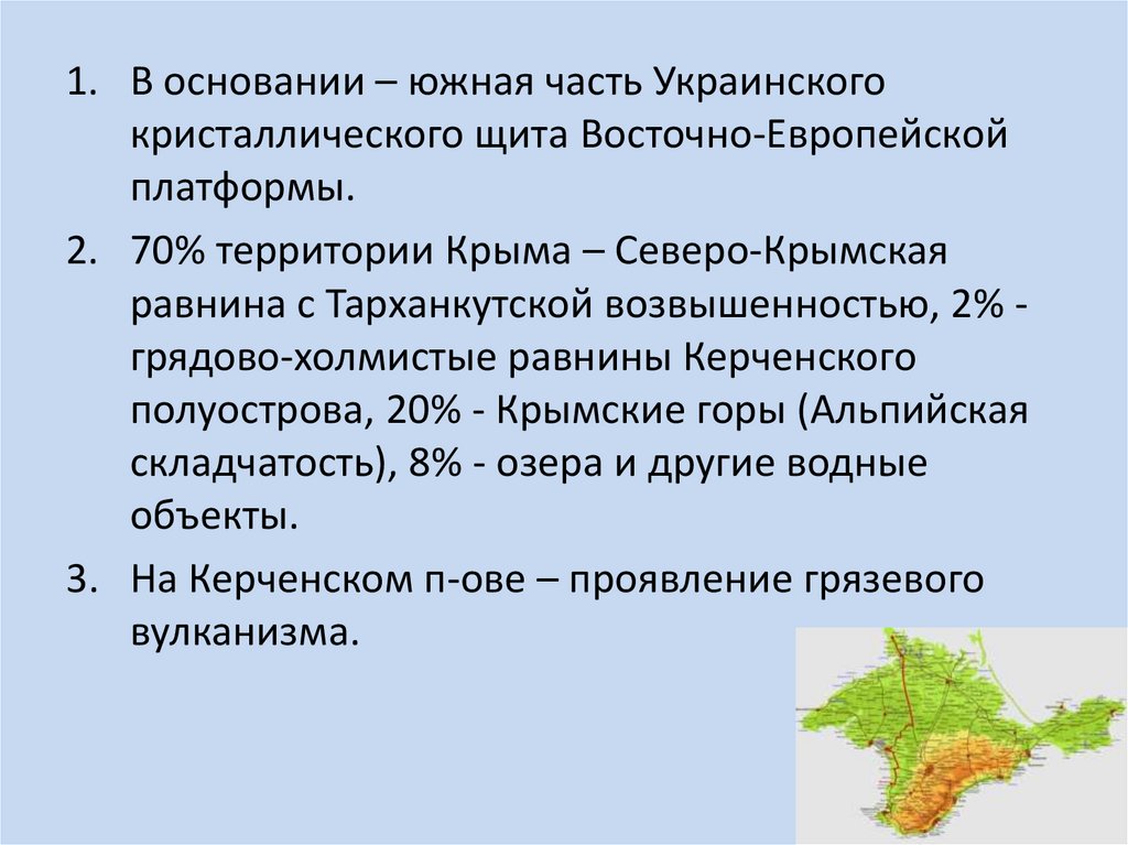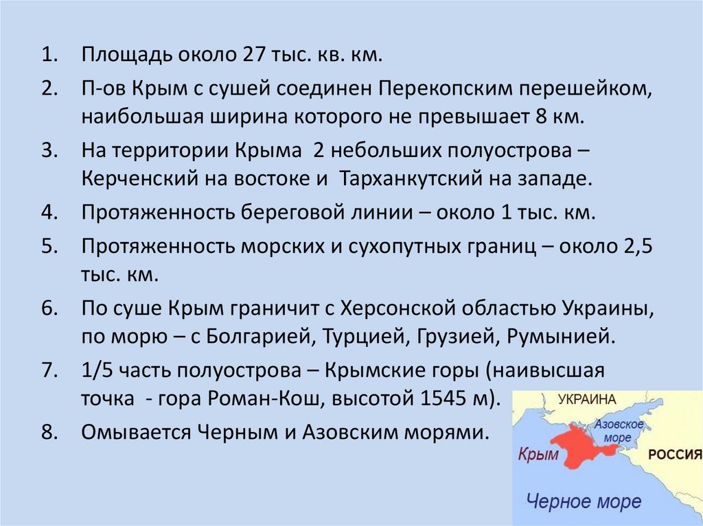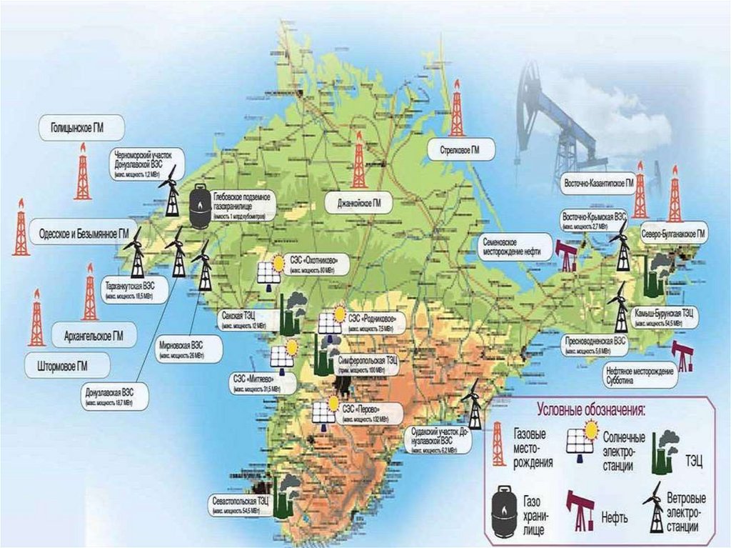 1. Запасы нефти на территории Крыма составляют всего47 млн. тонн, газа — 165,3 млрд. куб. м.