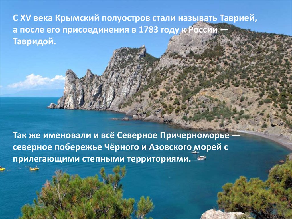 С XV века Крымский полуостров стали называть Таврией,а после его присоединения в 1783 году к России —