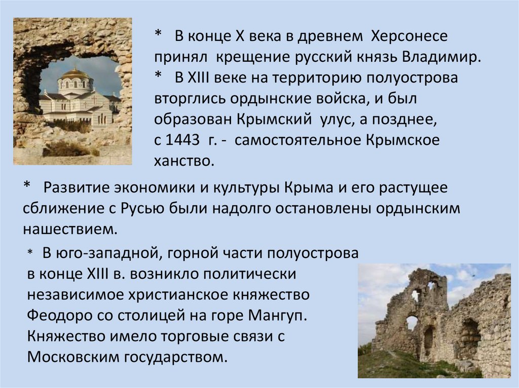 10. * С этого времени возрастает приток населения на полуостров Крым, растут города, развивается торговля и сельское хозяйство. *