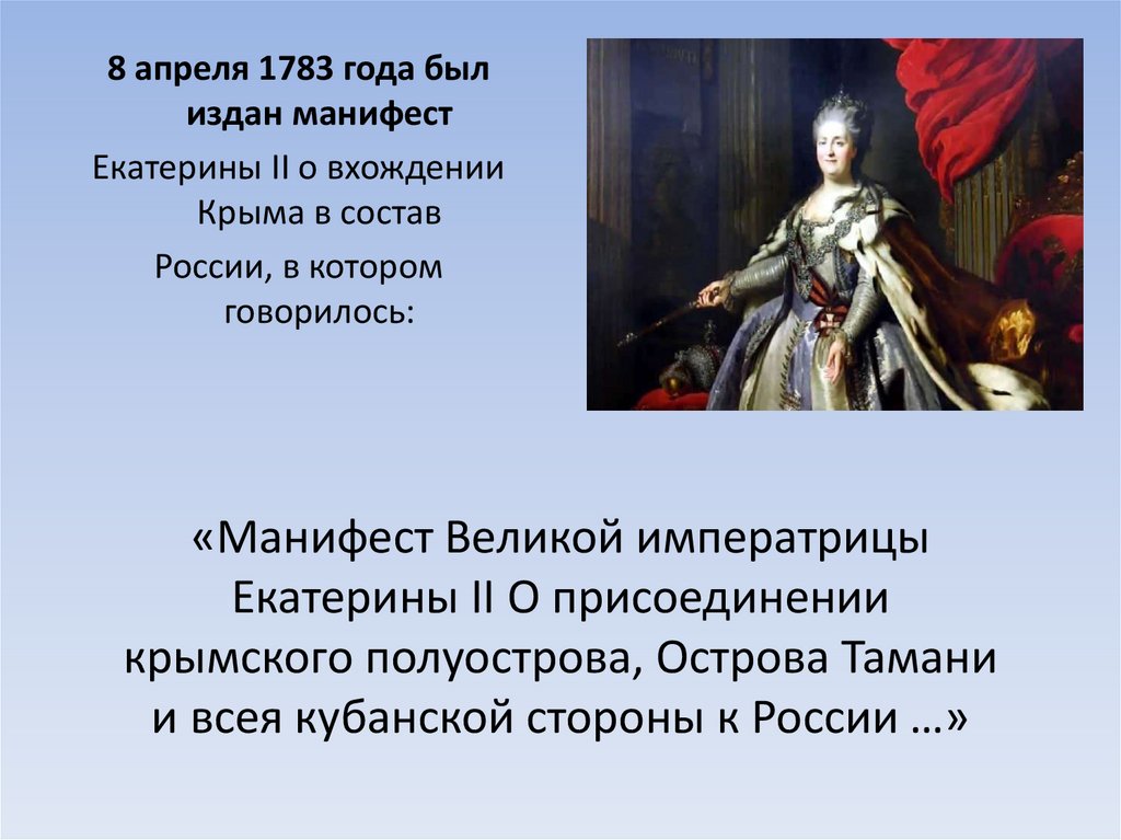 8 апреля 1783 года былиздан манифест