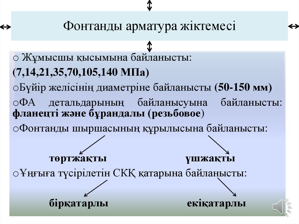 Фонтанды арматура жіктемесіo Жұмысшы қысымына байланысты: