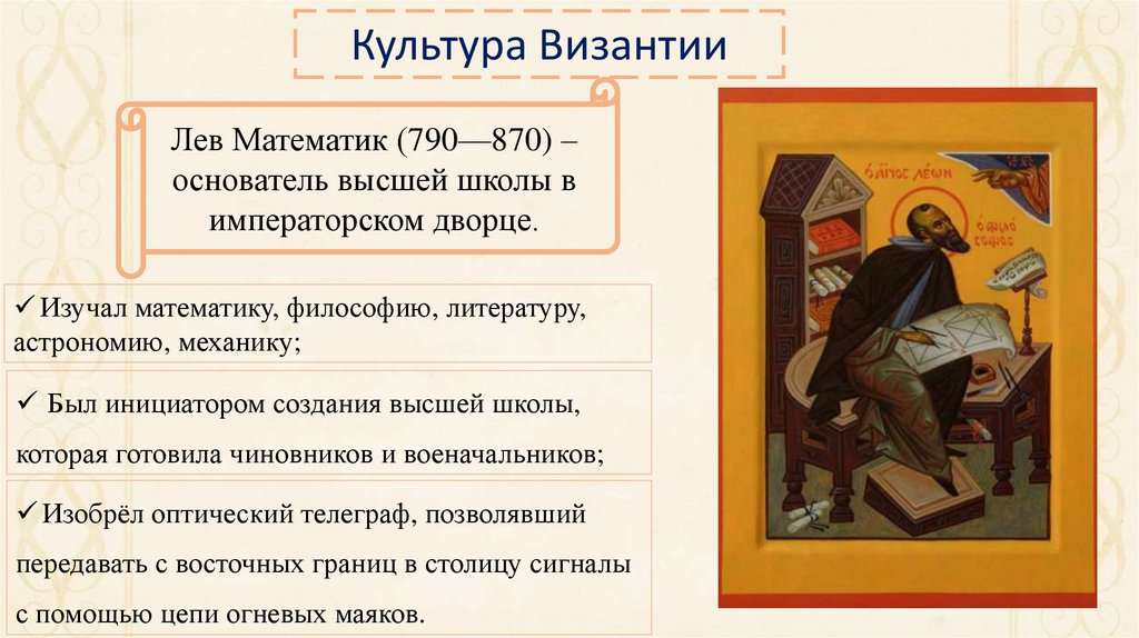 Культура ВизантииЛев Математик (790—870) –