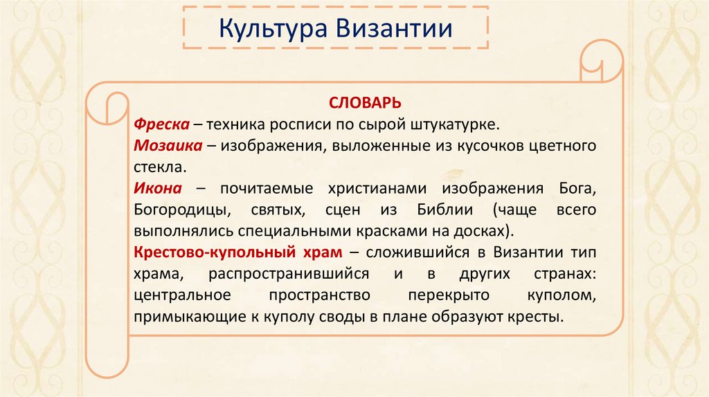 Культура ВизантииСЛОВАРЬ