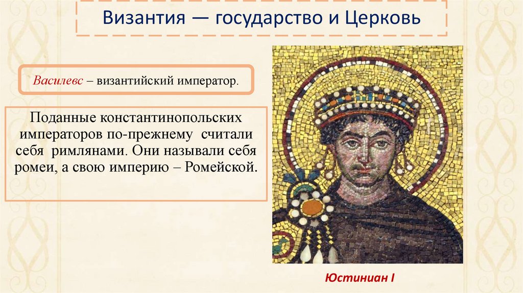 Византия — государство и ЦерковьВасилевс – византийский император.