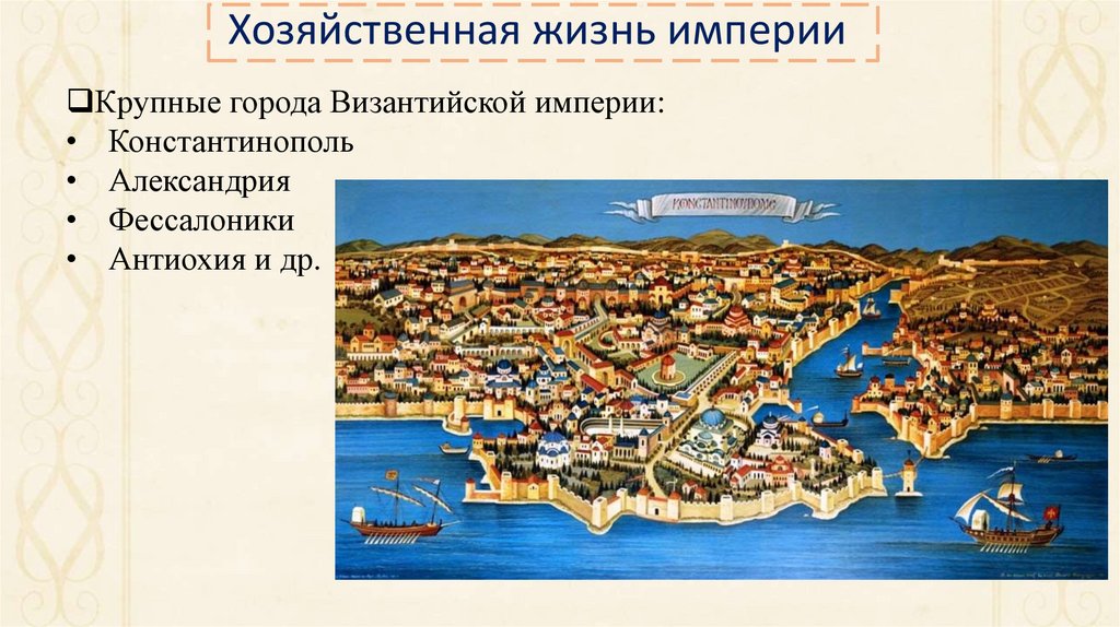 Хозяйственная жизнь империиКрупные города Византийской империи: