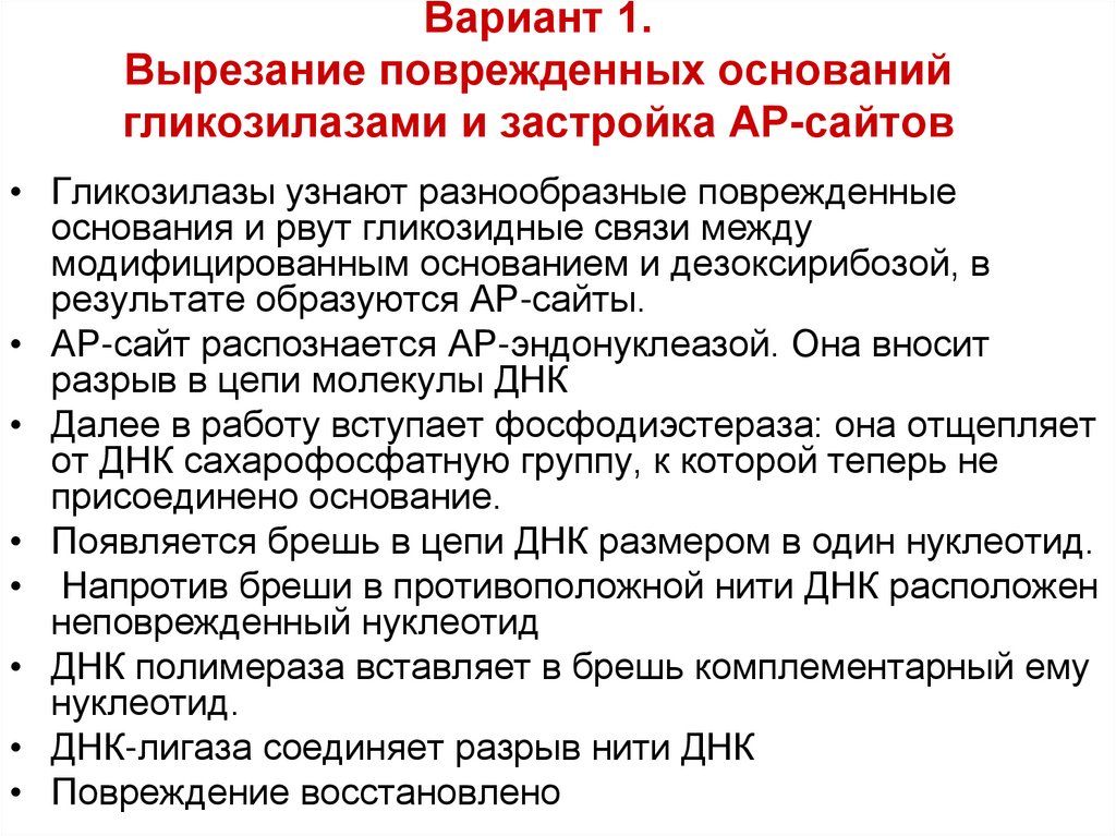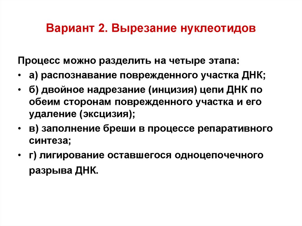 Вариант 2. Вырезание нуклеотидовПроцесс можно разделить на четыре этапа: