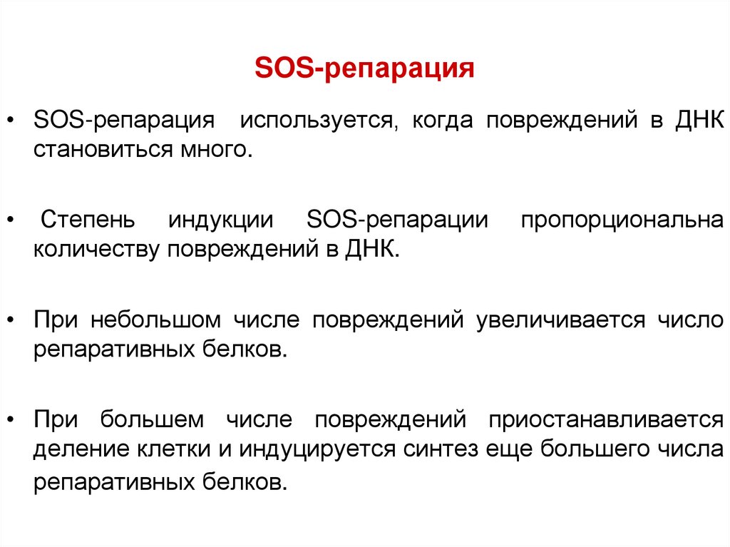 • Благодаря SOS-репарации происходит удвоение ДНК и