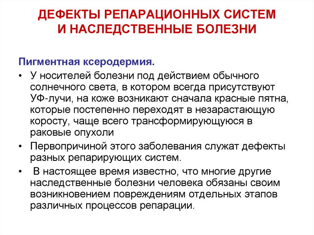 ДЕФЕКТЫ РЕПАРАЦИОННЫХ СИСТЕМИ НАСЛЕДСТВЕННЫЕ БОЛЕЗНИ